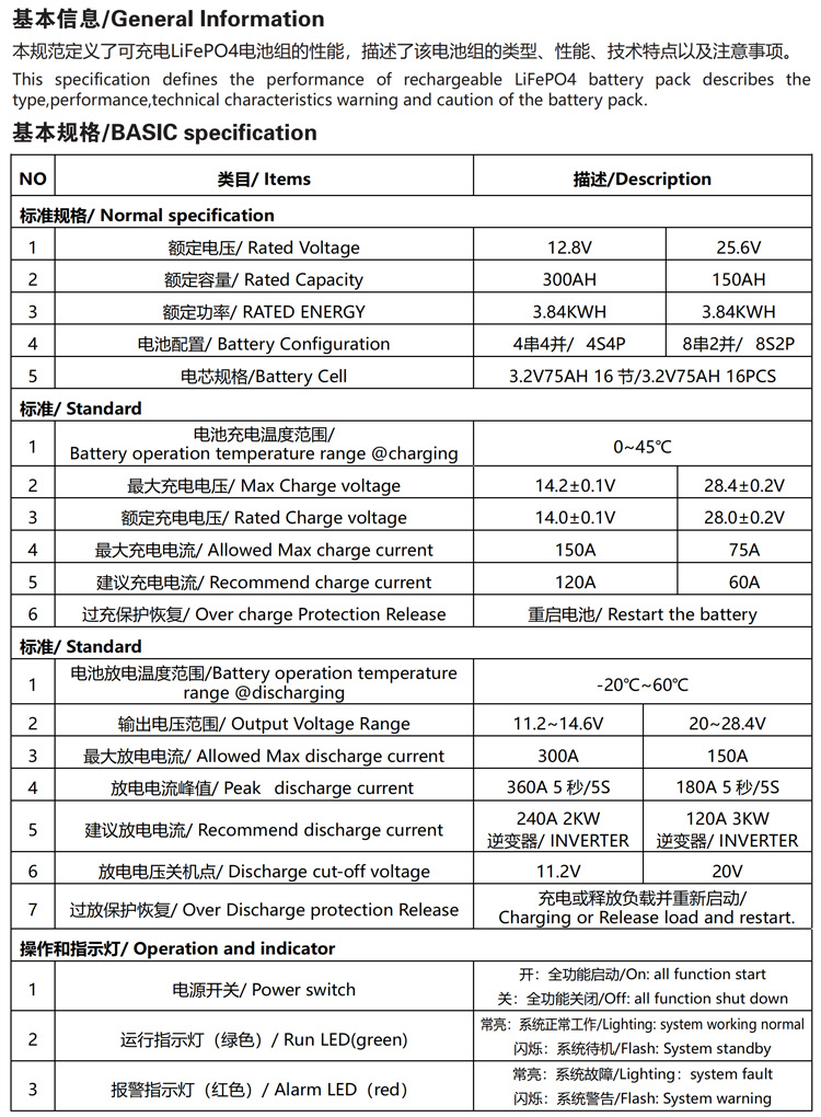 12V 300AH 3.84KWH鋰電儲能系統